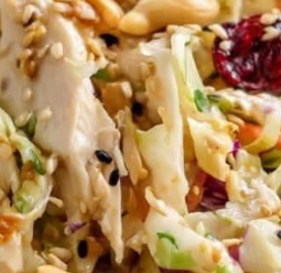 - Prepare the Salad Ingredients: In a large mixing bowl, combine the coleslaw mix, chopped rotisserie chicken, toasted almonds or cashews, dried cranberries, diced red onion, sesame sticks (if using), chopped cilantro, and mandarin oranges (if using). Toss gently to mix.