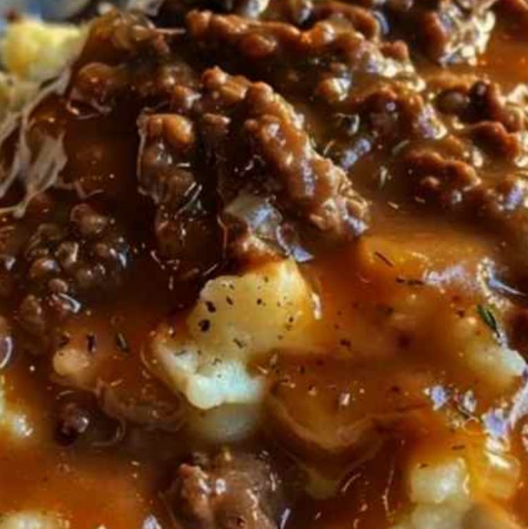 tried this delicious food for the first time at a community gathering. Potlucks can be a mixed bag, with some dishes you politely try and others you happily go back for more. The dish of ground beef and gravy on top of mashed potatoes was a big success, both for me and my husband. We both liked it a lot, so I had to ask for the recipe. It wasn’t only us, but others as well. All the guests loved it and wanted to know the recipe and figure out the special ingredients. Tasty, delicious, and satisfying—everyone wanted to be part of it.After the shared meal, I approached the cook, an elderly woman with a friendly smile who had a lot of experience in the kitchen. She was very happy to give me her recipe, feeling a bit flattered by all the attention. I was excited to get home and test it out. The first time I did it, I felt a bit anxious. Will it taste as good as hers? To my happiness, it was wonderful. The tasty sauce on top of smooth mashed potatoes quickly became a favorite in our home.Now, I am sharing this wonderful thing with you, hoping it brings as much happiness to your dinner table as it does to ours. Let me explain how to make this delicious and satisfying meal that is great for any event.Ingredients:Ingredients for the mashed potatoes:2 pounds of potatoes, peeled and cut into four pieces.Half a cup of milk4 tablespoons of butterAdd salt and pepper according to your preference.For the meat and sauce: 1 pound of ground beef1 onion of medium size, chopped2 pieces of garlic, chopped2 tablespoons of regular flour2 cups of meat broth1 tablespoon of Worcestershire sauceAdd salt and pepper according to your preference.You can add 1 cup of frozen peas and carrots if you like.Instructions:Make the mashed potatoes.Put the peeled and cut potatoes in a big pot and add water to cover them. Sprinkle a little salt and heat until boiling.Lower the temperature and allow the potatoes to cook gently until they are soft, which should take around 20 minutes.Remove the water from the potatoes and put them back in the pot. Put the milk and butter, then crush until it is soft and creamy. Add salt and pepper to your liking. Put a lid on the pot to keep the potatoes hot while you make the sauce.Cook the minced meat and make the sauce.In a big frying pan, cook the ground beef on medium-high heat until it is no longer pink. Remove any extra grease.Put the chopped onion and crushed garlic in the pan with the meat. Cook for around 5 minutes, until the onions are see-through.Add the flour to the beef mix and stir for 2 minutes to remove the raw flour taste.Slowly add the beef broth and Worcestershire sauce while stirring, making sure to scrape off any browned pieces from the bottom of the pan. Heat the mixture until it starts to bubble gently and allow the sauce to become thicker, which should take around 5 minutes.If you want, you can put the frozen peas and carrots in the pot during the final minutes of cooking. They bring color and extra nutrients.Add salt and pepper to the gravy according to your preference.Serve: Put the smooth mashed potatoes on plates or in bowls.Put the ground beef and gravy mixture on top of the potatoes.Heat it up and savor the coziness and warmth of this tasty dish.I remember the first time I cooked this dish at home, my husband came into the kitchen because of the delicious smell. “What are you making?” he inquired, looking over my shoulder. When I told him, he looked very happy. He knew exactly what was going to happen.We sat down to eat, and as soon as we took the first bite, it was like we were back at that shared meal. The mashed potatoes were smooth and buttery, a great match for the tasty ground beef and gravy. We both agreed that we should keep making this dish.Since then, it has become a regular part of our home. It’s a meal that is great for a comfortable night at home, especially when the weather gets colder. I love how simple it is to prepare, but it tastes like a dish from a cozy restaurant.One great thing about this recipe is how adaptable it is. At times, I like to mix things up. I have included mushrooms in the sauce for a natural taste, or mixed sweet and regular potatoes for the mashed potatoes. You can make it healthier by using ground turkey instead of beef or adding more vegetables like green beans or corn.Another suggestion: if you are in a hurry, you can make the mashed potatoes in advance. They warm up nicely with a bit of milk to make them creamy again. The sauce can be stored in the refrigerator for a few days, which makes it perfect for preparing in advance.This meal has become our favorite choice for relaxed dinners with friends as well. It’s simple to make more food for a large group, and everyone loves it. There is something special about how the flavors and textures come together to create a very satisfying experience. Moreover, it is reassuring in a special way that only food made at home can provide.Are you searching for a tasty and satisfying meal that everyone will enjoy? Try this ground beef and gravy served over mashed potatoes. It is a meal that unites people, making happy memories and satisfied stomachs. Maybe it will also become a favorite in your home, just like it did in ours. Enjoy!