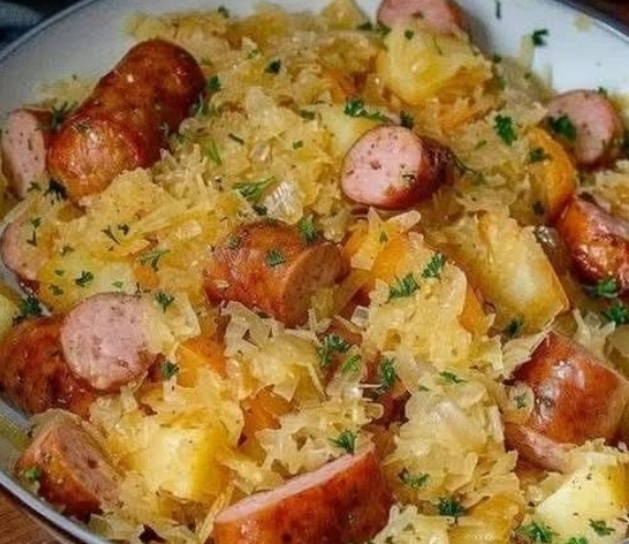This hearty and comforting Sausage and Sauerkraut Skillet is a classic dish that combines smoky sausages, tangy sauerkraut, and tender potatoes. It’s an easy one-pan recipe perfect for a cozy dinner or a flavorful addition to any family meal.