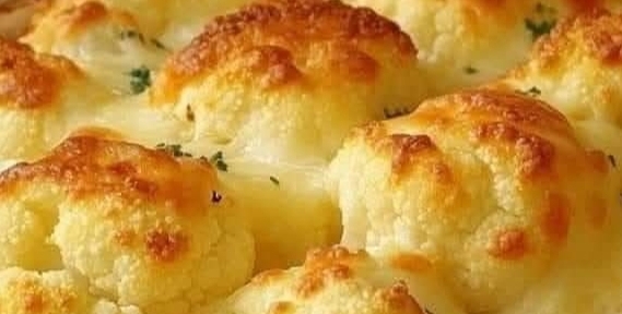 Transfer the roasted cauliflower to a greased baking dish.