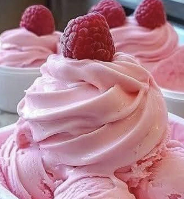 - Scoop into bowls, pipe some softened ice cream on top for a swirl effect, and garnish with fresh raspberries.