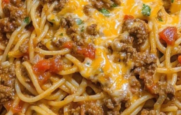 Taco Spaghetti combines the savory flavors of taco seasoning with the comfort of pasta, creating a fun and satisfying fusion meal. The hearty ground beef, aromatic vegetables, and zesty taco seasoning come together with spaghetti to make a dish that everyone will love. Whether you’re hosting a casual family dinner or looking for a quick weeknight meal, this dish is sure to become a favorite. Ready to enjoy a delicious twist on taco night?