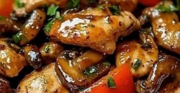 Ingredients Advertisement * 2 boneless, skinless chicken breasts, cubed* 1½ cups mushrooms, sliced (button, cremini, or your fave)* 1 red…